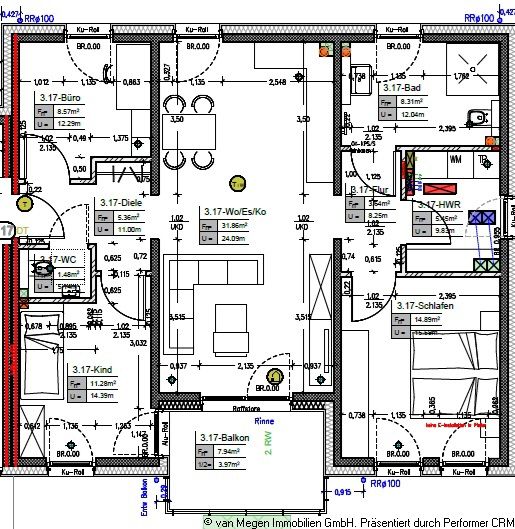 Das neue 21-Familienhaus wird derzeit in solider, qualitativ und handwerklich hochwertiger Bauweise durch die Firma Megens errichtet. Fertigstellungstermin wird ca. Juli 2026 sein, sodass die Mieter das Objekt im August 2026 beziehen können. Das Wohnhaus teilt sich in Erdgeschoss, 1. Obergeschoss, 2. Obergeschoss und Dachgeschoss auf. Das Objekt ist nicht unterkellert. Das Mehrfamilienhaus wird als KFW 40 plus - Haus gebaut. Um einen weiteren Schutz vor Feuchtigkeitsbildung zu haben, erhält jede Wohnung eine kontrollierte Be- und Entlüftungsanlage. Im Objekt wird eine zentrale Luft-Wasser-Wärmpumpe eingebaut. Die Warmwasserversorgung erfolgt über die vorgenannte Wärmpumpenanlage einschließlich Warmwasserspeicher und einer nachgeschalteten Trinkwasserladestation. In den einzelnen Wohnungen sind Fußbodenheizungen mit Raumthermostaten vorhanden. Die Heizkosten werden mit entsprechenden Wärmezählern je Wohneinheit ermittelt und gemäß Heizkostenverordnung abgerechnet. Um eine exakte Frischwasser- und Schmutzkanalabrechnung zu ermöglichen, sind für jede Wohneinheit Wasserzwischenzähler vorhanden. Die Außenwände im Erd- und Obergeschoss sind mit Wärmedämmung lt. Wärmeschutznachweis und einer Verblendung errichtet worden. Das moderne Dach ist umlaufend mit einer Zinkabdeckung eingefasst. Die Dachflächen sind nach Richtlinien des Dachdeckerhandwerks mehrlagig bituminös abgeklebt, einschl. Wärmedämmung nach EnEv. Es wird eine PV-Anlage mit Akkuspeicher auf dem Flachdach installiert. Die jeweiligen Treppenhäuser sind modern errichtet und werden tapeziert. Die Beleuchtung im Treppenhaus erfolgt über Präsenzmelder. Einkäufe können leicht über die vorhandene Aufzugsanlage in die einzelnen Wohnungen transportiert werden. Die Aufzugsanlage ist mit einem Notrufsystem ausgestattet. Es sind Kunststofffenster mit Wärmeschutzverglasung als drei Scheiben Glas mit entsprechenden Profilen gemäß EnEV vorhanden. Die Fensterelemente sind von innen weiß und von außen anthrazit foliert. Die Kunststofffenster der Wohneinheiten erhalten Kunststoffrollladen in grau Standard als Elektrorollladen. Die großen Fensteranlagen mit Anschluss an die Terrassen / Loggien der Wohneinheiten erhalten eine Außenraffstoreanlage in Aluminium mit Elektroantrieb. Die Bedienung der Außenraffstoreanlage erfolgt über einen Kippschalter im Bereich der Fensteranlage. Auf den gemeinschaftlichen Flächen und in den Wohneinheiten werden zur Sicherheit der Bewohner entsprechende Rauchmelder installiert. Gemeinschaftlich wird im Erdgeschoss ein gemeinschaftlicher Müllabstell- und der Fahrradabstellraum genutzt. Das Objekt erhält eine digitale SAT-Anlage. Die benötigten Receiver sind seitens der Bewohner anzuschaffen. Sämtliche Schlafräume und das Wohnzimmer erhalten TV-Anschlüsse. Die Kosten für Hausreinigung und Hauswart sind bereits in den Nebenkosten enthalten. Der zur Wohneinheit gehörende Außenstellplatz ist mit monatlich EUR 40,00 separat zu vergüten. Das Objekt erhält eine Schließanlage.